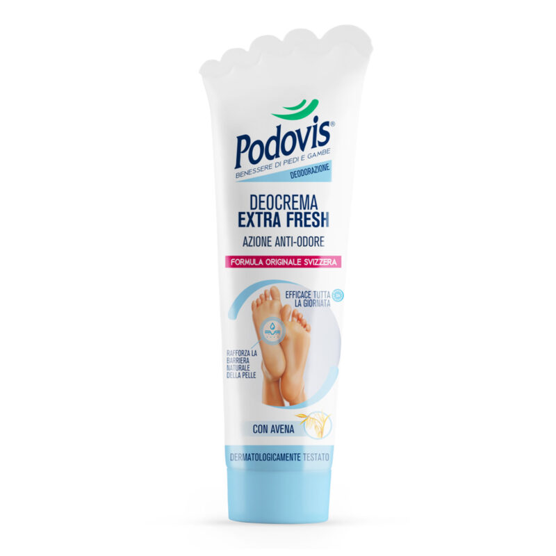 La Deocrema Extra Fresh Podovis combatte il cattivo odore, limitando la trasformazione di elementi presenti sulla pelle in sostanze odorose.